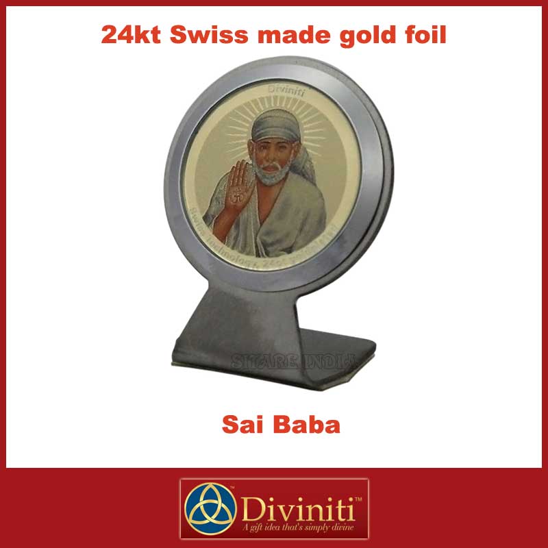 Shirdi Sai Baba Diviniti 24ct Gold Foil Car Frame