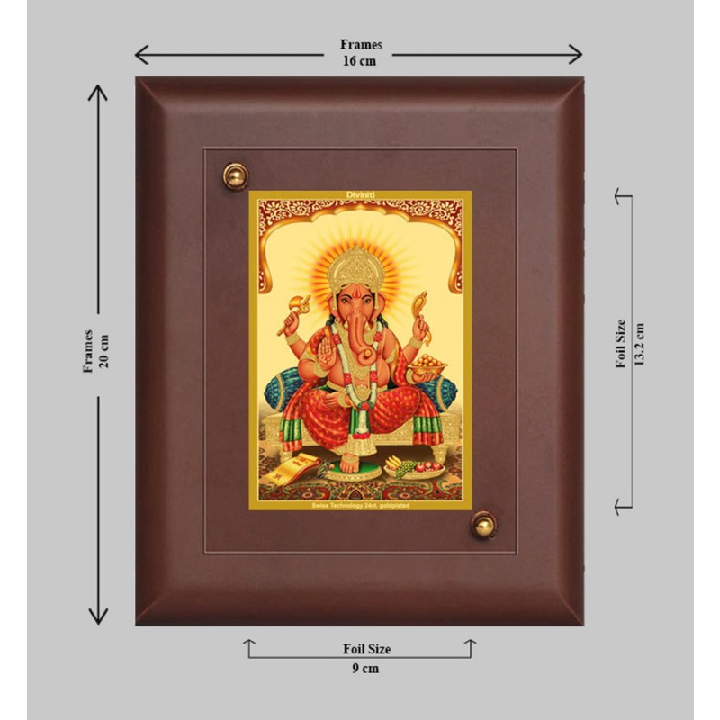 Crafted with Swiss technology, the frame features an exquisite 24-carat gold-plated foil that adds a touch of sophistication and elegance to any setting. The use of high-quality gold plating ensures a rich, lustrous finish that catches the eye and enhances the beauty of the frame. Each frame is meticulously designed to showcase the image of Lord Ganesha in a way that embodies both spiritual significance and artistic brilliance.