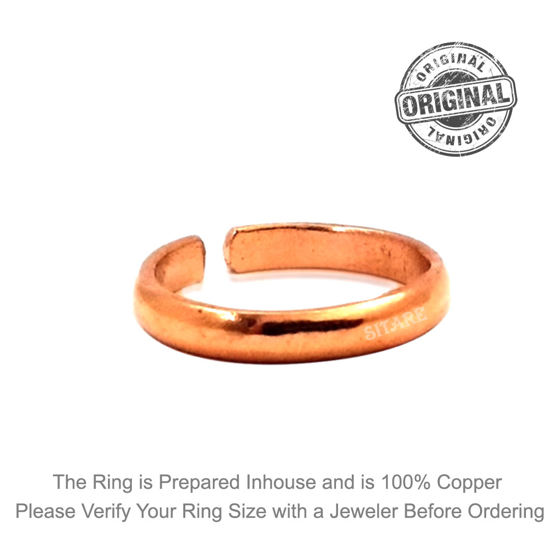 The rings are of free size which is adjusted as per your finger. Copper ring when worn in ring finger stabilizes the body and provides the fundamental support for sadhana or spiritual practices. People who are deficient in copper may benefit from wearing copper Ring, since it can be absorbed through the skin. Copper Ring is a good way of taking in the small amount of the mineral needed. The ring is handcrafted to retain the maximum spiritual power of the ring. The product photograph’s material and color as displayed in the picture may slightly be different from the original product due to light conditions and digital enhancement.