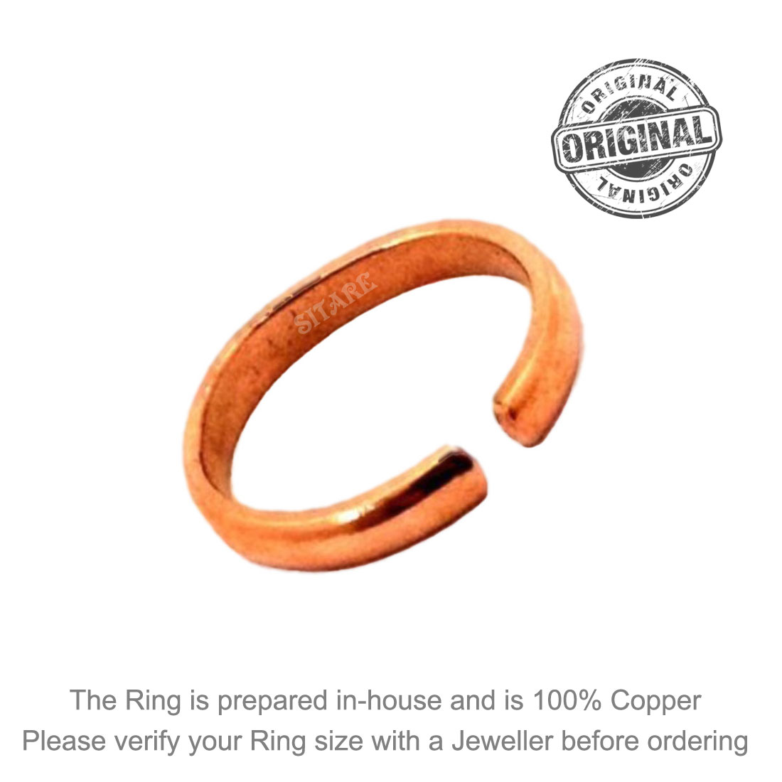 The rings are of free size which is adjusted as per your finger. Copper ring when worn in ring finger stabilizes the body and provides the fundamental support for sadhana or spiritual practices. People who are deficient in copper may benefit from wearing copper Ring, since it can be absorbed through the skin. Copper Ring is a good way of taking in the small amount of the mineral needed. The ring is handcrafted to retain the maximum spiritual power of the ring. The product photograph’s material and color as displayed in the picture may slightly be different from the original product due to light conditions and digital enhancement.